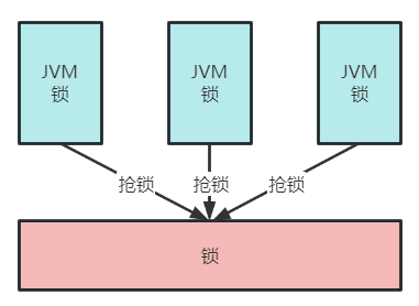 现在要实现分布式环境下所有虚拟机中的线程去同步执行就需要让多个虚拟机去共用一个锁,虚拟机可以分布式部署,锁也可以分布式部署,如下图: