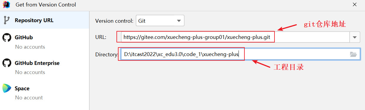 创建项目时,选择通过版本控制创建项目(Get from VCS)